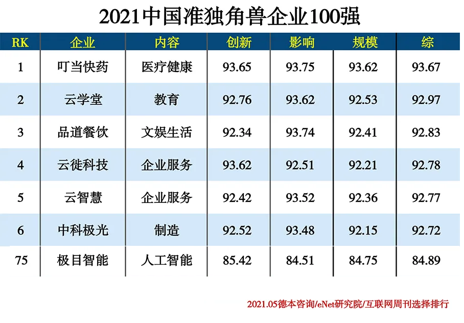 像互联网周刊在此次榜单的推荐词中所说,每一只独角兽或准独角兽企业的品牌实力和影响力都不容小觑,他们的产品与技术水平也是不可否认的。一个企业想要得到社会的认可就需要努力创造社会所认可的价值,并需要围绕社会价值构建企业的经营模式和文化精神。
