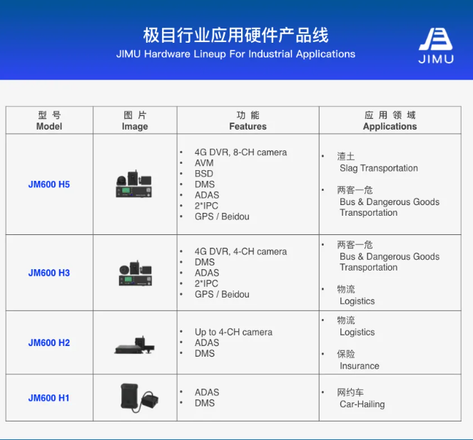 For industrial applications, JIMU Intelligent mainly focuses on the fields of commercial transport fleets, auto insurance and online car-hailing. JIMU products have been sold to over 20 countries including South Korea, Singapore, Australia, the United States, Indonesia, and India, etc.